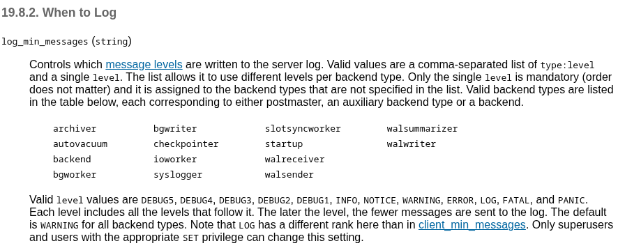 | In response to | Re: log_min_messages per backend type (Alvaro Herrera <alvherre@alvh.no-ip.org>) |