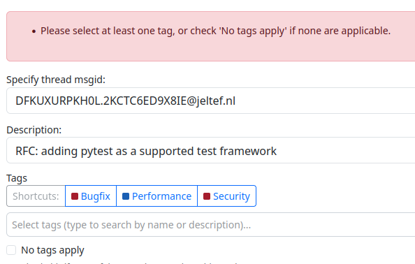 9b. Forcing someone to confirm by clicking a checkbox if no tags selected