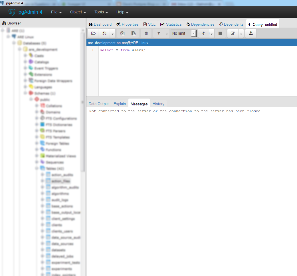 Thanks for the new PgAdmin 4. It works fine with my local database but when I use it to connect to my postgres 9.5 in my vm everything works except view data and query tool.