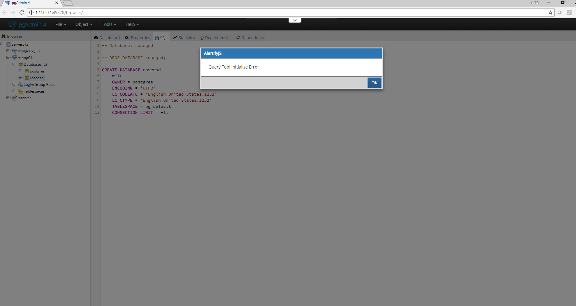 Query Tool Initialize Error - Mailing list pgsql-admin