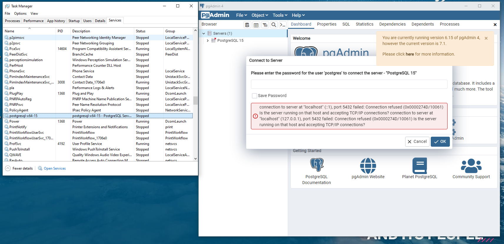Our user is facing issue to connect Postgre server database. Please review the error message in attachment and assist us.