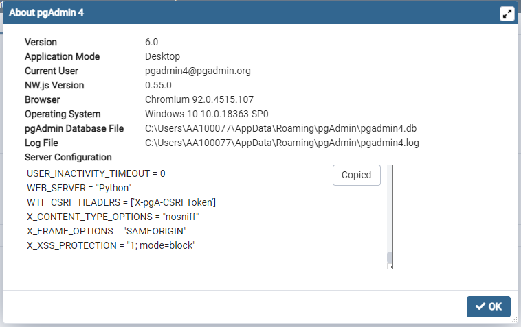 LOG_FILE = "C:\Users\AA100077\AppData\Roaming\pgAdmin\pgadmin4.log"